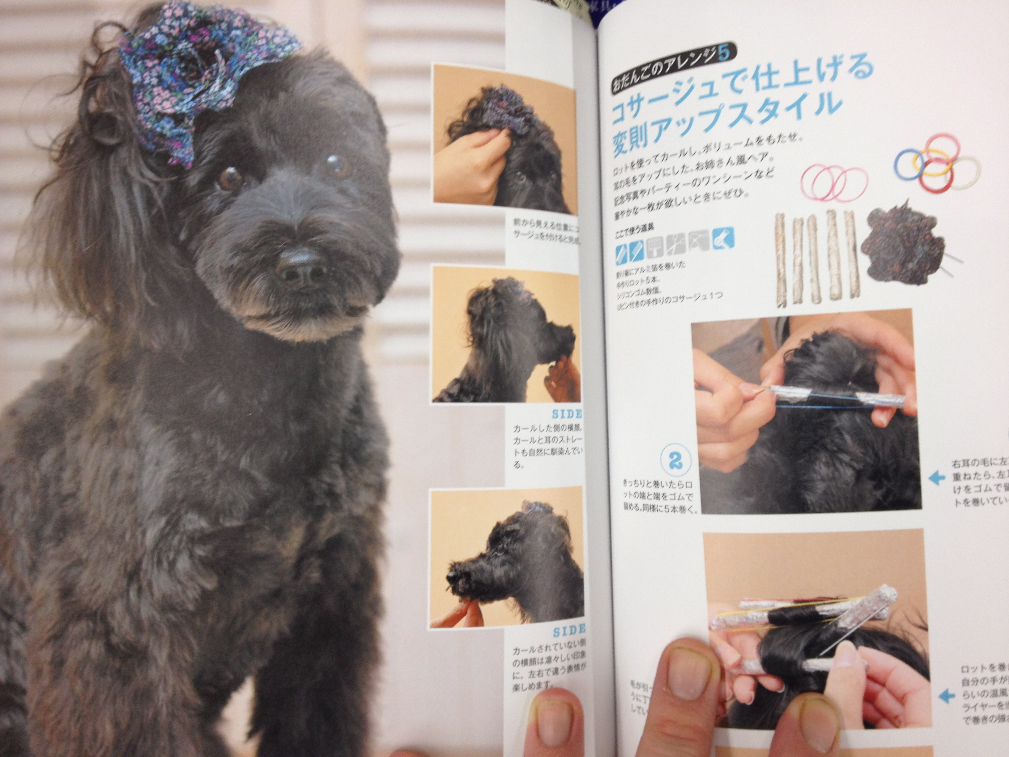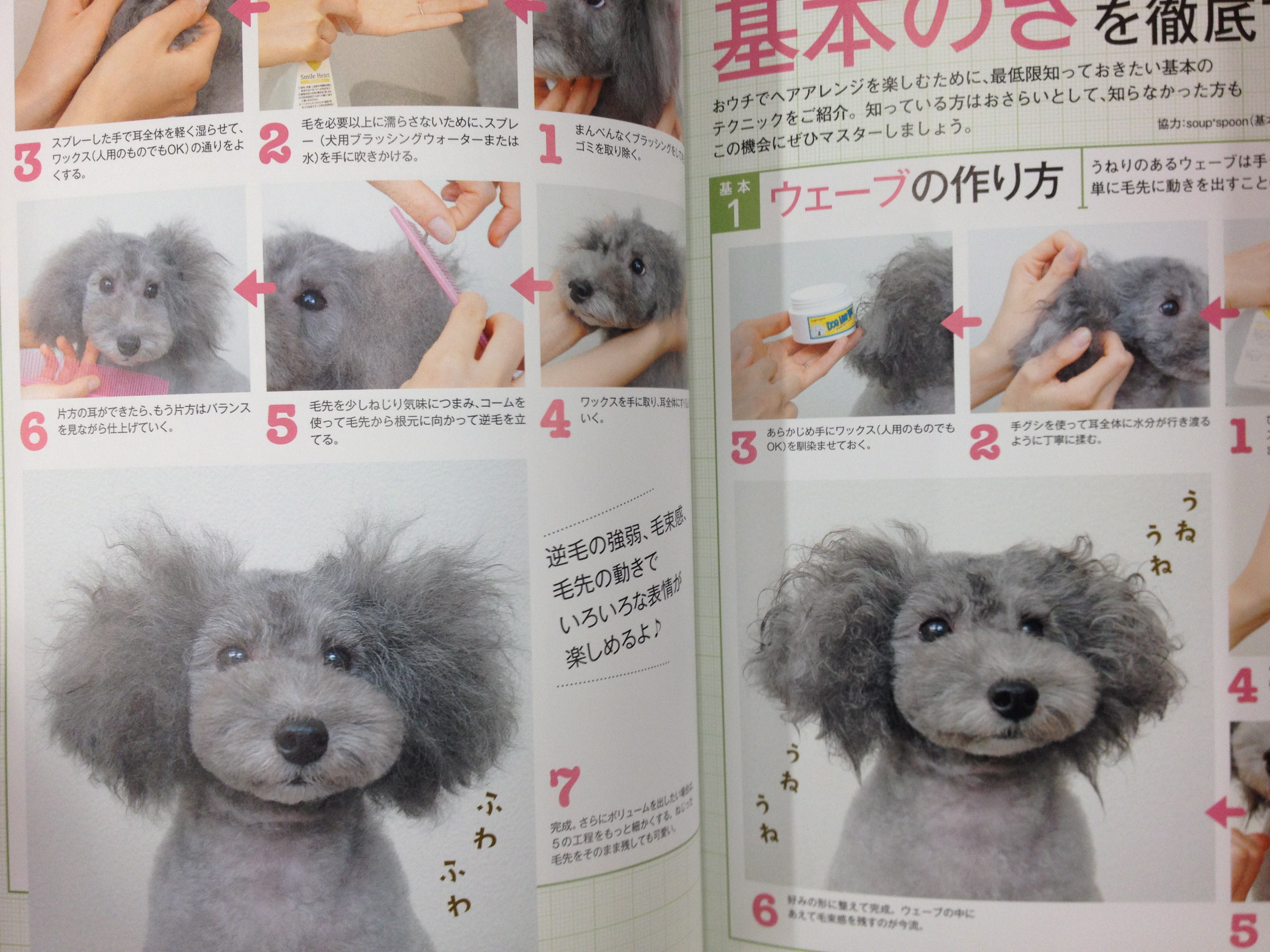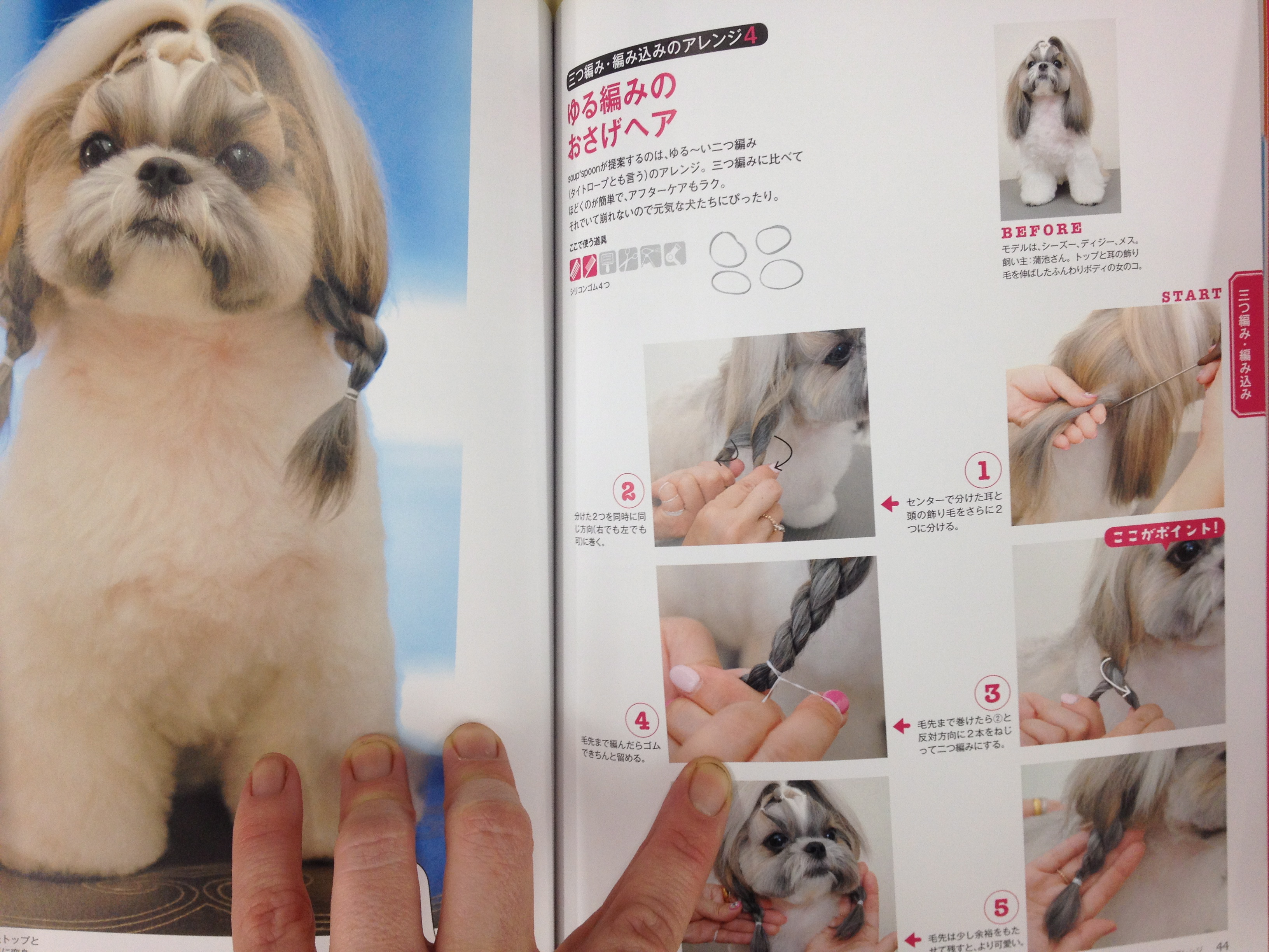Also, give me two days and a dictionary, Dog Hair Arrange magazine, and we’ve got ourselves one of those English language gift picture books they sell at Urban Outfitters. Dibs on that idea. Also, the little grey one looks like he/she has a masters degree in library science. If I did his or her hair like this I wouldn’t be able to stop myself from purchasing name brand horn rimmed glasses for him or her. Also, cheers to the dog who can wear a side pony with confidence. I guess the ’80’s are back even in Japanese dog hair arrangement.